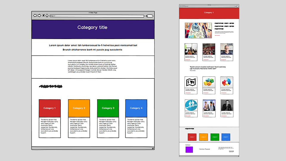 To redesign a new ‘knowledge hub’ blog platform for the global organization Common Purpose, making improvements to the previous version in relation to the user journey, layout and overall UX. The organization need was to create a new look, which entailed strategizing improvements in functionality and the UI; using uniform infographics as thumbnails and allow a very simple user journey with as few clicks as possible, using a initial landing page from the main Navigation.