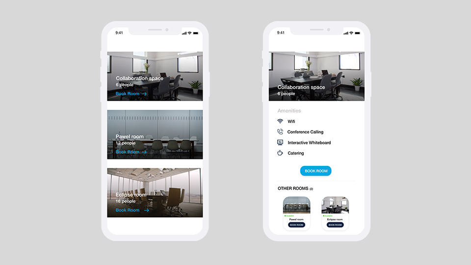 A Lightweight phone application and web based platform concept design which allows staff members in companies to book meeting rooms and add additional requirements for their specific needs. This third party app will also allow for integration with calendars in other platforms such as Outlook or Google Calendar.