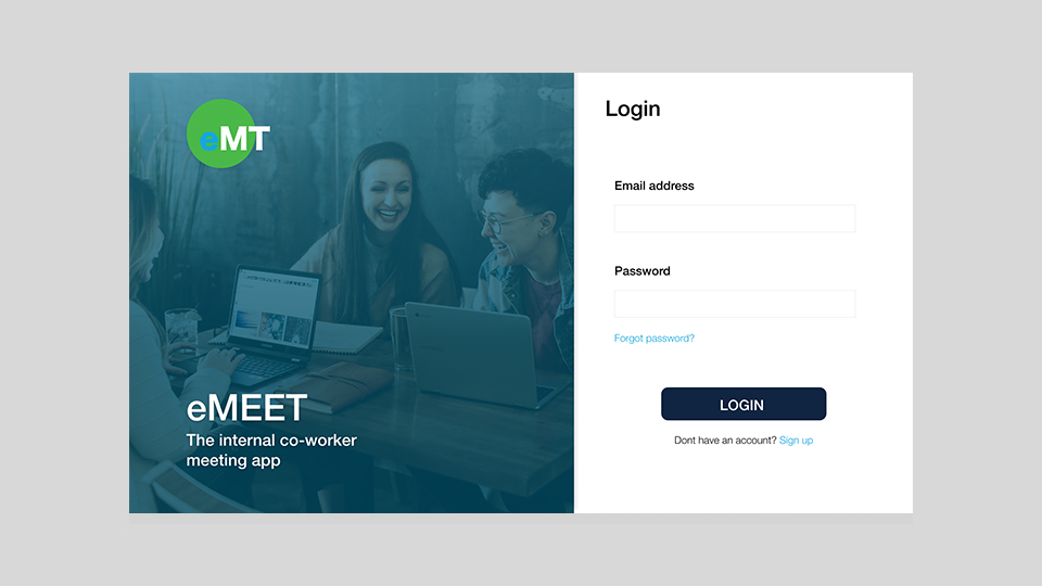 The login/Sign up process is very simple for the end user. New and existing staff members would simply be sent an email notification from eMeet with a generic username and password update option.
